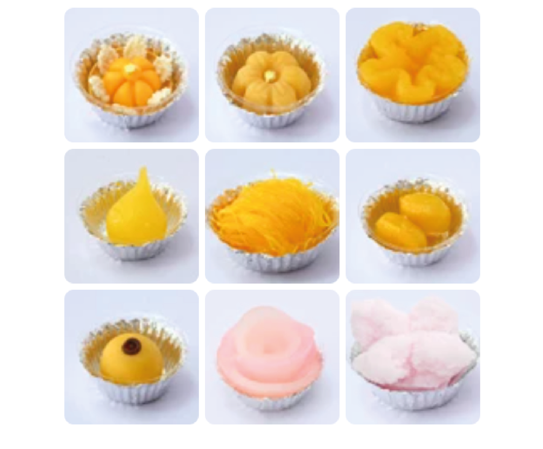 เทียนเสวย กลีบลำดวน สัมปันนี ถ้วยฟู เผือกกวน เเอปเปิ้ลอบ